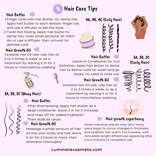 Our all-natural hair growth oil is carefully crafted to nourish, strengthen, and revitalize your hair from root to tip. Each ingredient is chosen for its proven benefits in promoting healthy hair growth, reducing breakage, and improving overall scalp health. Key Benefits: